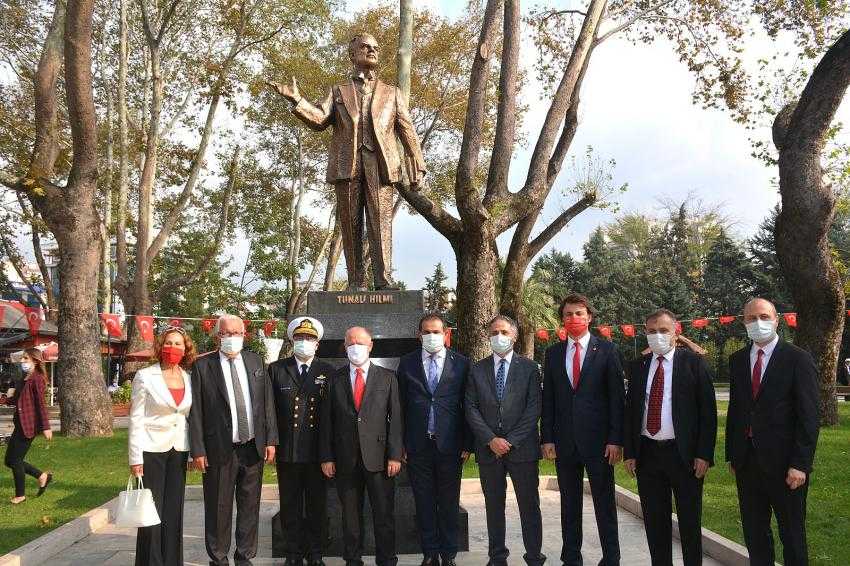 Cumhuriyet Bayramı kutlamaları, protokolün ve sivil toplum kuruluşu temsilcilerinin katılımıyla, saygı duruşu ve İstiklal Marşı okunmasının ardından Atatürk Anıtı’na çelenk sunma töreniyle başladı. Kaymakam İsmail Çorumluoğlu, Karadeniz Bölge ve Garnizon Komutanı Tuğamiral Taner Gün ile Kdz Ereğli Belediye Başkanı Halil Posbıyık’ın Atatürk Anıtı’na çelenk koymaları ardından program kapsamında İnönü Parkı’na yerleştirilen Tunalı Hilmi Heykeli’nin açılış törenine geçildi.