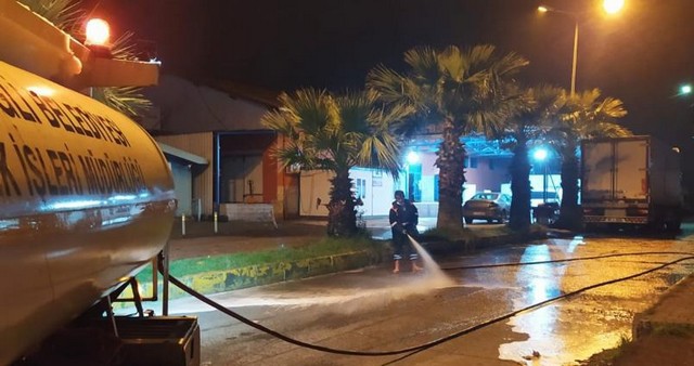 Bozhane Su Ürünleri bölgesinde son günlerde artan balık kokusu şikayeti üzerine Belediye Başkanı Halil Posbıyık’ın talimatıyla harekete geçen Temizlik İşleri Müdürlüğü ekipleri, Bozhane bölgesini ilaçlı köpüklü su ile baştan sona yıkayarak dezenfekte etti.