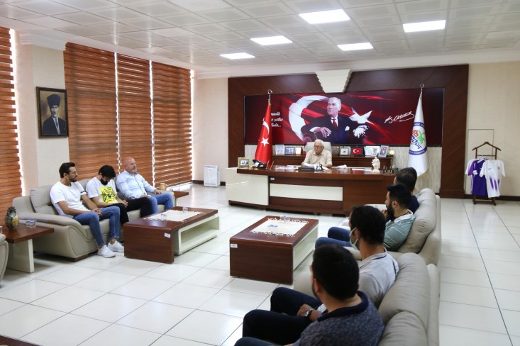 Kdz. Ereğli Belediyespor 2’nci Başkanı İhsan Yazıcıoğlu ve Yönetim Kurulu Üyeleri ile birlikte yeni sezonda anlaşmaya varılan Kaleci Burak Onur, Sağbek Doğancan Akkaya ve Kanat Oyuncusu Ceyhun Altıntaş Kdz. Ereğli Belediye ve Belediyespor Kulüp Başkanı Halil Posbıyık’ı makamında ziyaret etti.