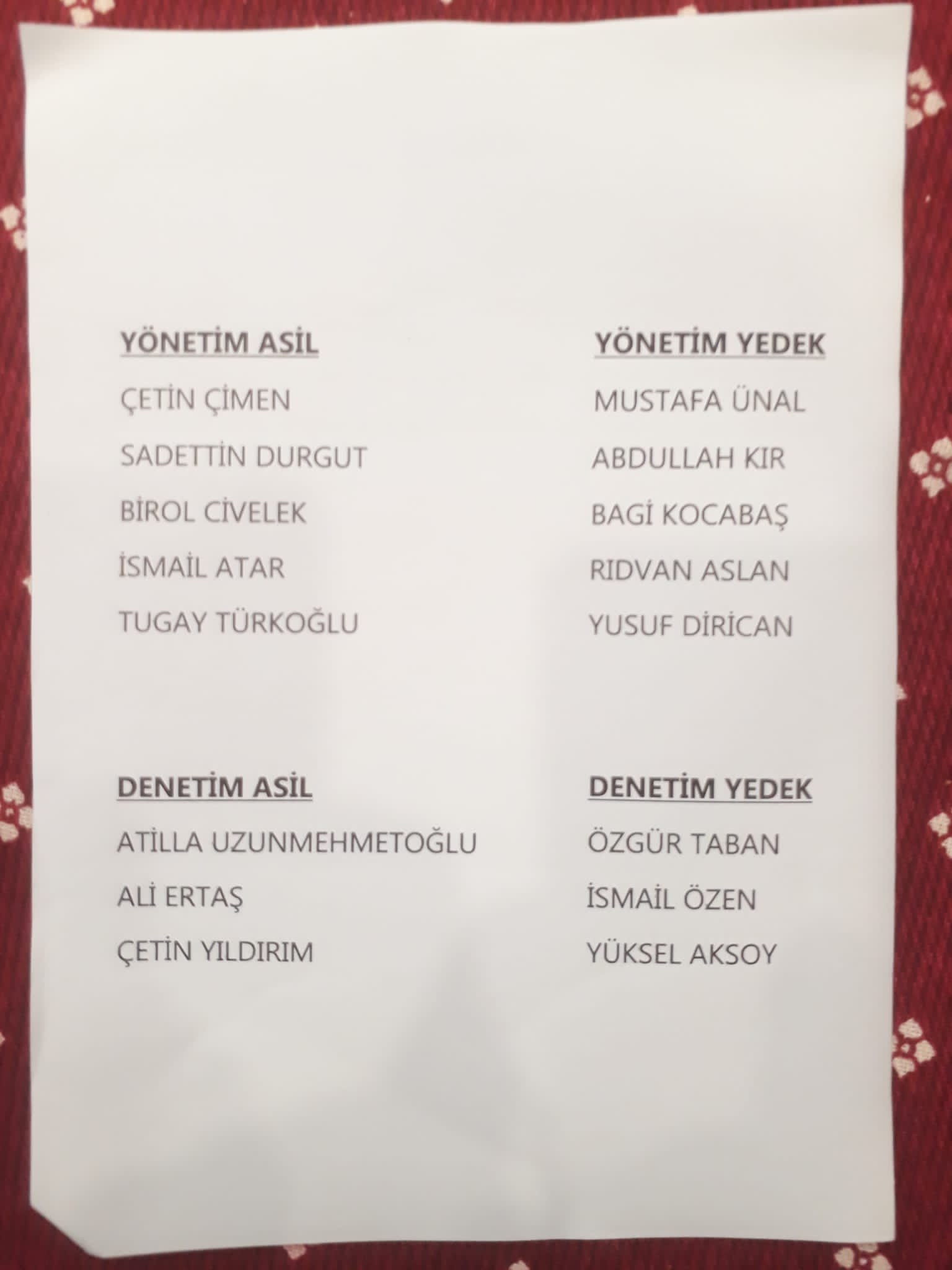 Çetin Çimen'in yönetimi şu şekilde oluştu: