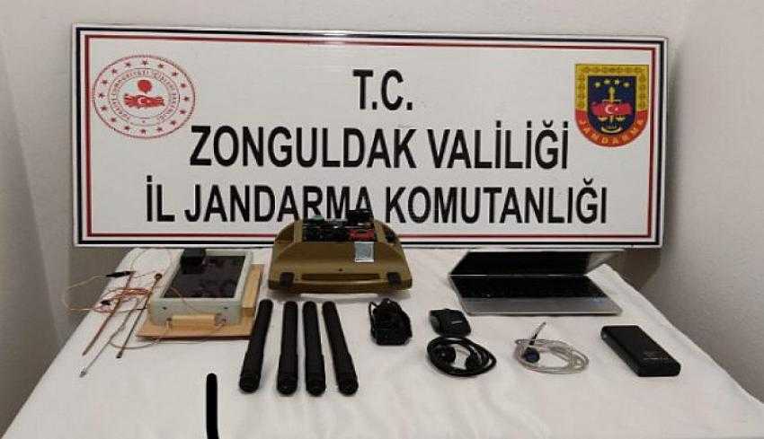Yapılan operasyonda dedektör ve dizüstü bilgisayara el konuldu..