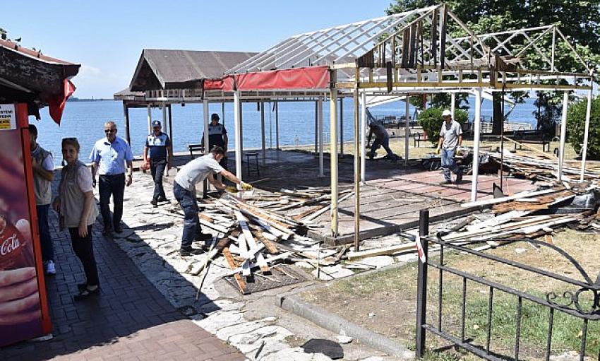 Kdz. Ereğli Belediyesi, sahil bandında bulunan Gözlemeciler alanında yeni bir düzenleme çalışması başlattı. Eski çatı, masa ve sandalyeler kaldırılarak yerlerine kamelyalar yerleştirilecek. Alan modern bir kullanım alanına sahip olacak.