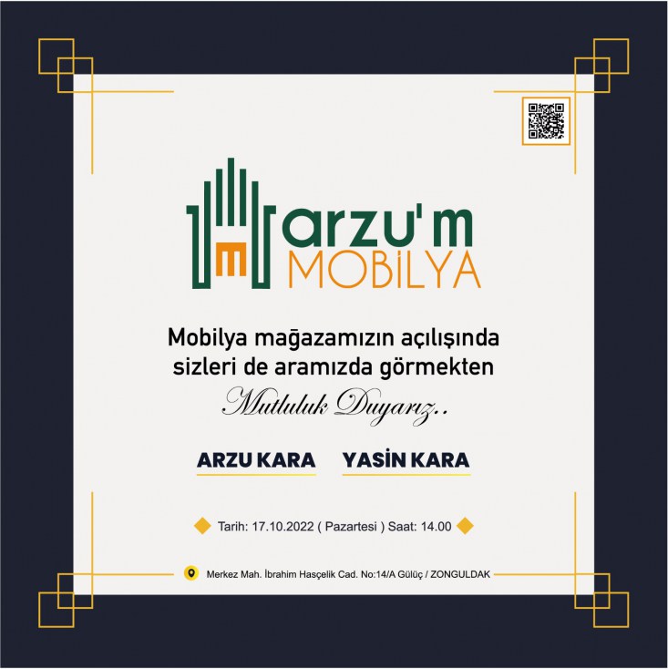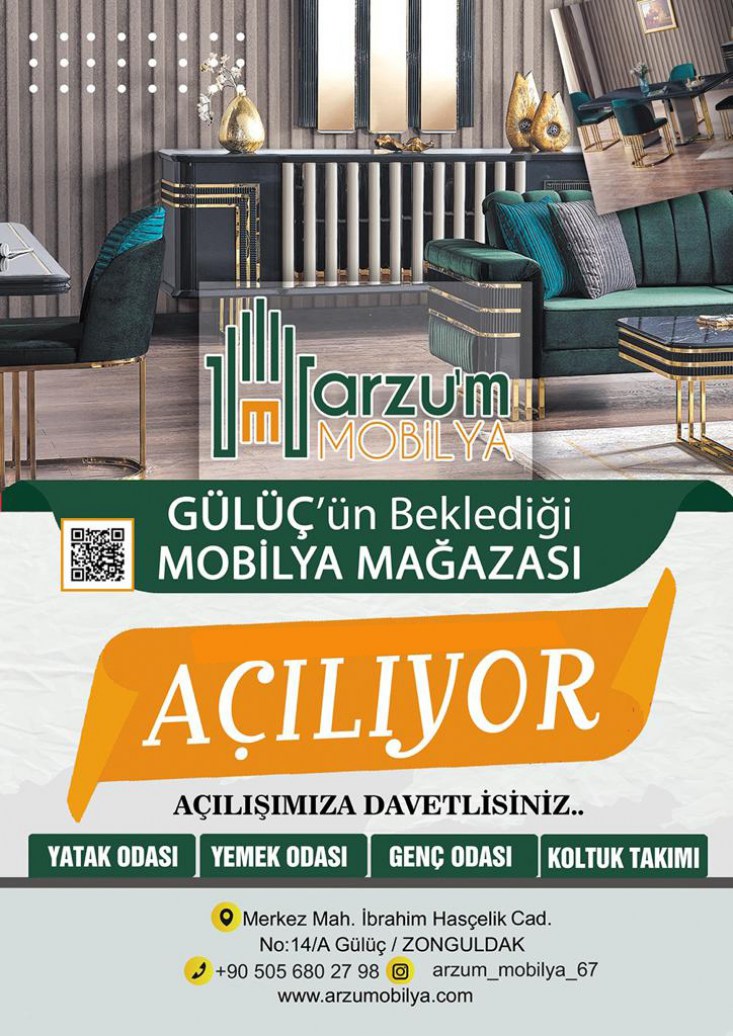 Sahipliğini Arzu ve Yasin Kara kardeşlerin yaptığı Arzu’m Mobilya mağazası 17 Ekim 2022 tarihinde Pazartesi günü saat 14.00’da Merkez Mahallesi İbrahim Hasçelik Caddesi no:14/A Gülüç adresinde açılıyor.