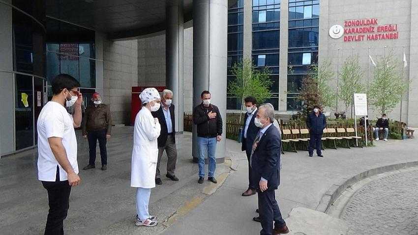 Öte yandan, AK Partili kurmaylar, Ereğli Devlet Hastanesi ziyaretinin hemen sonrasında Karadeniz Ereğli Kaymakamı İsmail Çorumluoğlu'nu da ziyaret ettiler. Girişte, güvenlik görevlisince elektronik cihaz ile ateş ölçümleri yapılan vekiller, bir süre Çorumluoğlu ile görüştüler.