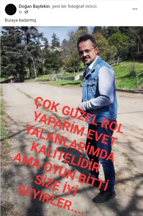 4 aydır karısı Ş.B ile ayrı yaşayan 2 çocuk sahibi Doğan Baytekin'in intihar öncesi sosyal medya hesabından 'Buraya Kadarmış' şeklinde paylaşım yaptığı ortaya çıktı..