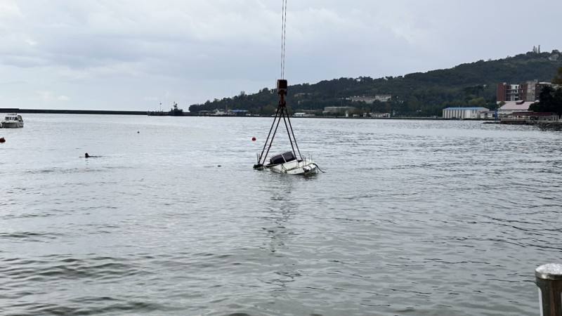 Kdz. Ereğli’de fırtınada batan kabinli sürat teknesi denizden çıkarıldı