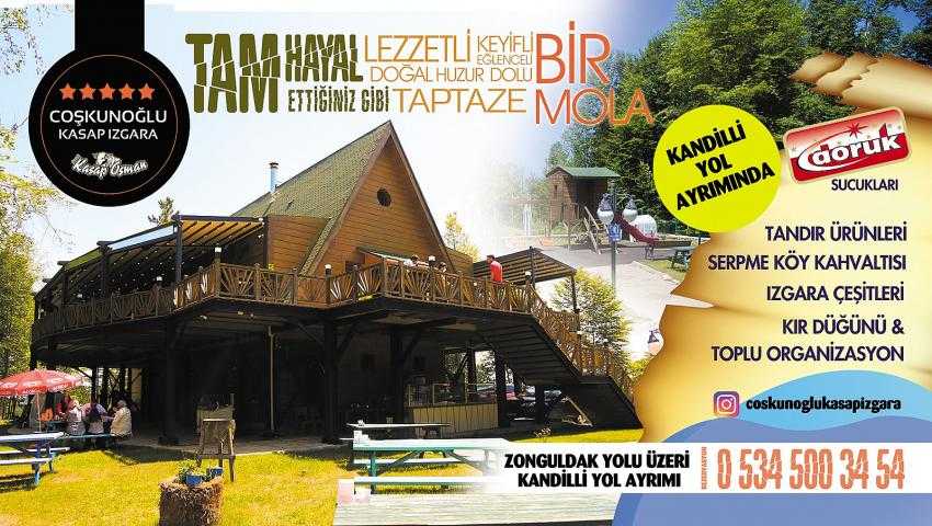 Kdz.Ereğli-Zonguldak yolu üzerinde kurulan ve doğa ile iç içe olan bu tesiste dinlenmeye ve bir molaya davet eden firma sahibi Mustafa Coşkunoğlu "Haydi bir MOLA... " çağrısında bulunarak müşterilerinin Kurban Bayramını da ayrıca kutladı. Coşkunoğlu Kasap ve Izgara tesisi bir çok ürünüyle müşterilerine hizmet vermeye devam ediyor.