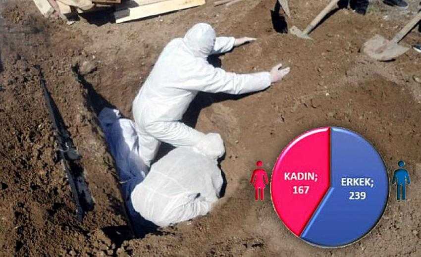Ereğli’de Koronavirüs nedeniyle hayatını kaybeden 406 kişiden 239’u erkek,167’si kadın.