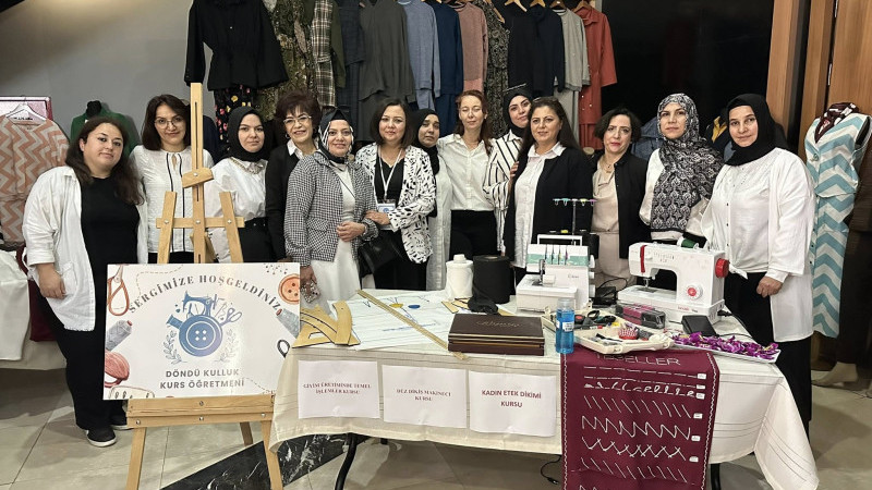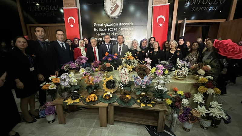 Kursiyerlere sertifikaları verilmesinin ardından, kursiyerlerin hazırladığı el emekleri sergisinin açılış kurdelesi kesildi ve daha sonra kursiyerlerin el emekleri sergisi gezildi hatıra fotoğrafları çektirildi.