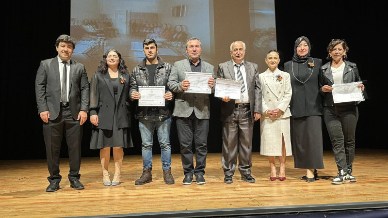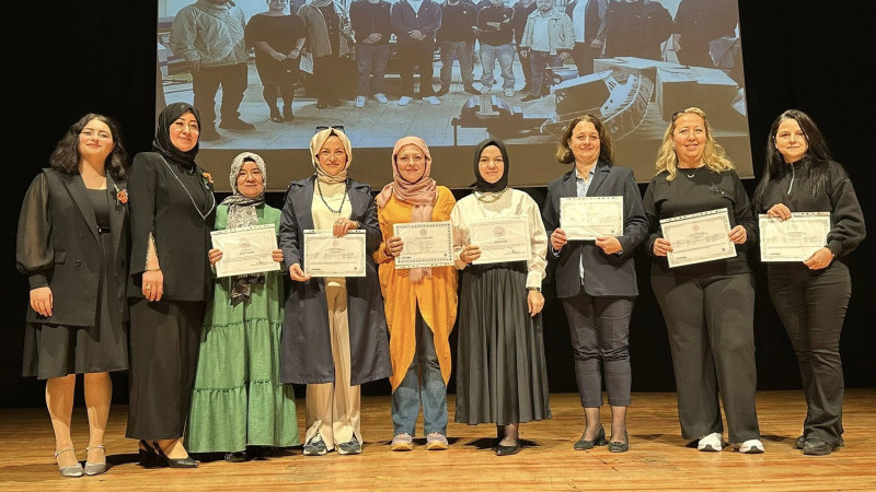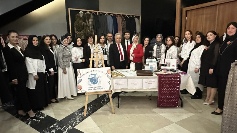 Kursiyerler el emeklerini sergilediler, belgelerini aldılar.