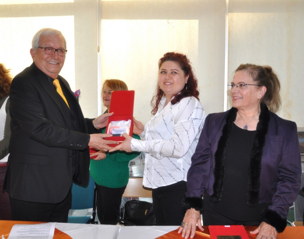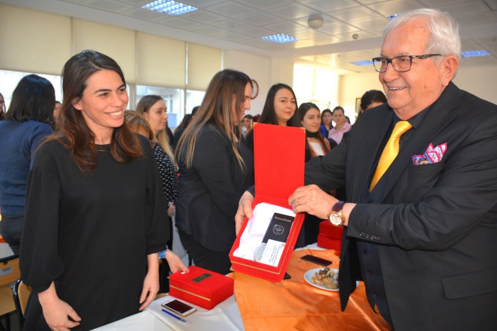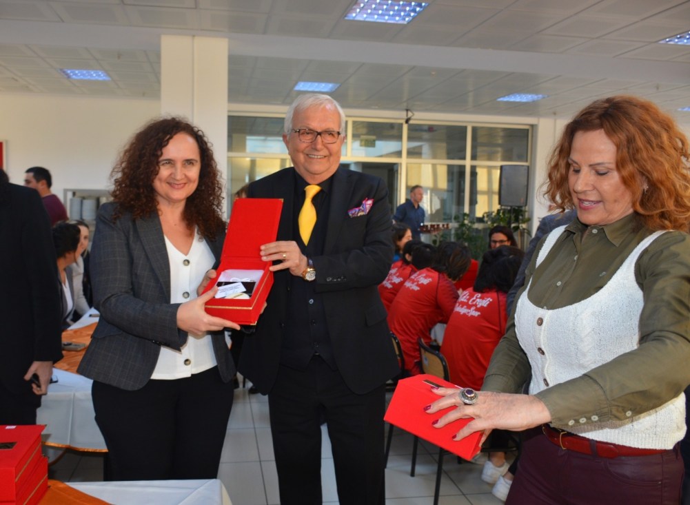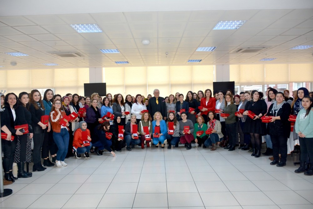 Başkan Posbıyık, konuşması ardından kadın çalışanları kutlayarak hediyelerini tek tek verdi. İlk hediyeleri eşi Neriman Posbıyık'a ve kadın Belediye Meclis üyelerine takdim etti.