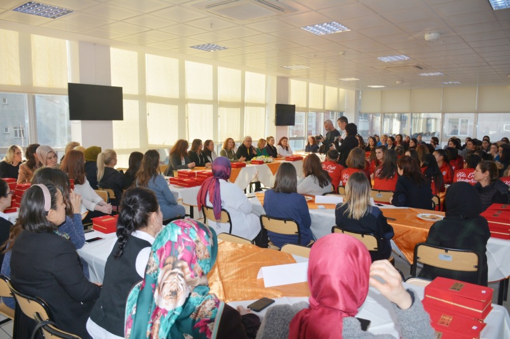 Kdz. Ereğli Belediye Başkanı Halil Posbıyık ve eşi Neriman Posbıyık, 8 Mart Dünya Emekçi Kadınlar günü öncesinde belediyenin kadın çalışanlarıyla buluştu.