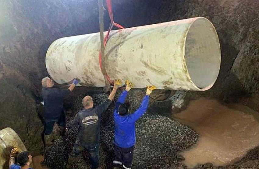 "Kızılcapınar Barajı ile Kdz. Ereğli Belediyesi Süleymanbeyler Köyü’ndeki Arıtma Tesisi arasında yer alan 1200 mm’lik hatta öğlen saatlerinde meydana gelen arızanın giderilmesine çalışılıyor.