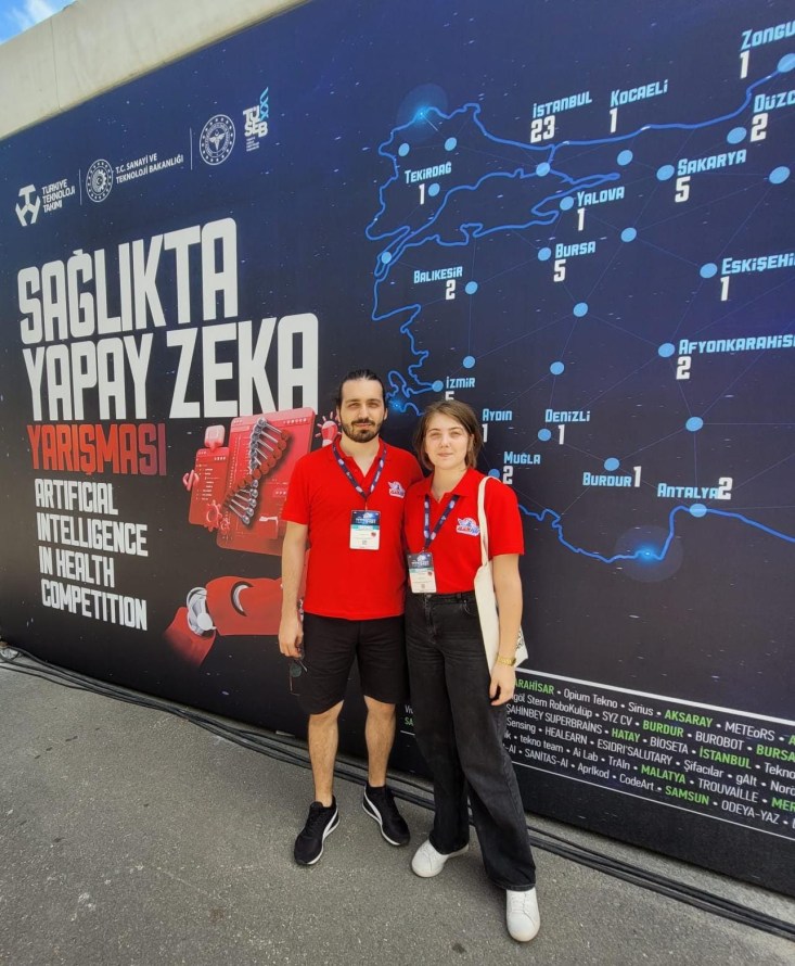 SPATIUM bünyesinde çalışmalarını yürüten Üniversitemiz Bilgisayar Mühendisliği 4. Sınıf öğrencisi Handan Terzi ve Gebze Teknik Üniversitesi Fizik Bölümü öğrencisi Muhammed Abdullah Özkan, TEKNOFEST kapsamında düzenlenen yapay zekâ yarışmaları final hazırlıklarını tüm hızıyla sürdürüyor.