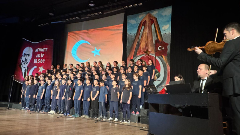 Programda, Mehmet Akif Ersoy’un hayatından kesitlerin sunulduğu görsel gösterimin ardından öğrenciler tarafından hazırlanan oratoryo sahnelendi. Müzik öğretmenlerinin piyano, keman ve yan flüt eşliğinde seslendirdiği eserler salonda duygu dolu anlar yaşattı. Ortaokul 5. sınıf öğrencilerinin hazırladığı koro büyük beğeni toplarken, 7. sınıf öğrencisinin İstiklâl Marşı’nı piyanoda seslendirmesi sırasında protokol üyeleri, öğretmenler ve öğrenciler marşa ayakta eşlik etti.