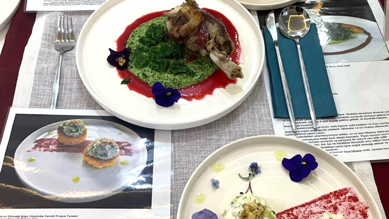 Okul; Yiyecek ve İçecek Hizmetleri Alanı öğretmeni Gül Tozman danışmanlığında, öğrenciler Büşra Bayar, Pelinsu Kurt ve Damla Turpçu ile yarışmaya katıldı. Yarışmada Kestane Çorbası, sade ve pancarlı malay eşliğinde ciğerli mancar sarma ile cevizli incir tatlısından oluşan menü sunuldu.